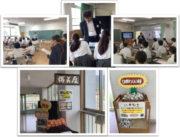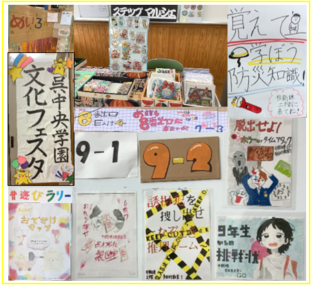 昨年度、呉中央学園文化フェスタで生徒が地元の事業所とともに開発した商品も、知ってもらうことができました。呉中央学園のキャラクター「KURE星くん」の焼き印を入れたどら焼きの「星ドラ」やクリアファイル、ステップ学級が育てた「ひまわりの種」など、お土産として多くの方々に持って帰ってもらいました。 |