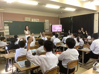 5月24日(水) ■自己表現力の向上に向けて,生徒が自分の考えや意見を表現する場面を作りながら,毎日の授業を行っています。 |
