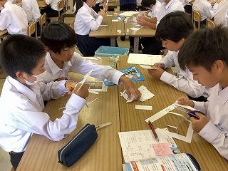 8月18日(月)~21日(木) ■1年生が、総合的な学習の時間に「新・海事産業ものづくり体験学習」の一環として、ペーパークラフトで船を作ったり、船長さんから講演を聞いたりしました。その後、ジャパンマリンユナイテッド呉事業所に見学に行きました。 |