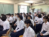 7月7日(金) ■呉市学校防災週間の最終日に全校での防災学習を行いました。仁方地区の防災訓練に参加した生徒の報告や、国土交通省の「土砂災害防止に関する作文」で優秀賞(事務次官賞)をいただいた作文を全校に披露するなどしました。 |