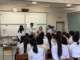 7月1日(火) ■職場体験学習に向けてのマナー講座として、呉阪急ホテルの特別講師から「マナーとは何か」「なぜ、大切なのか」「プロフェッショナルの心得」など、実技を含めて学ぶことができました。 |