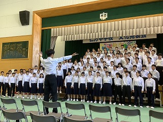 11月8日(金) ■「国際交流事業」タイ教職員の皆様の学校訪問がありました。短時間でしたが、授業見学や給食交流、教職員交流を行いました。全校合唱「僕らはいきものだから」を心を込めて歌い、見送りました。 |