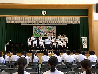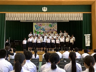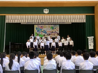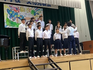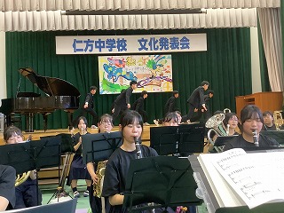 10月12日(土) ■令和6年度仁方中学校「仁音祭(におんまつり)」を開催しました。「天歌夢奏~魂で奏でる無限の世界へ~」をテーマに心をひとつに一致団結した合唱や演奏をしました。今年は、全校合唱で心をひとつに声を響かせました。 |