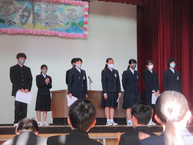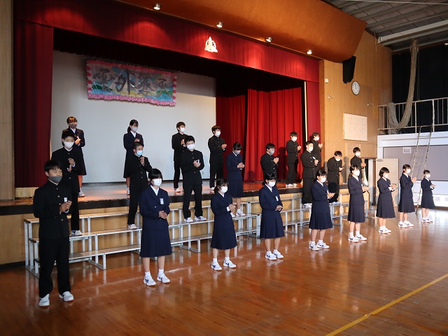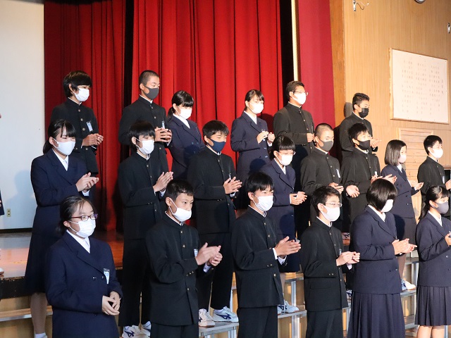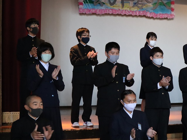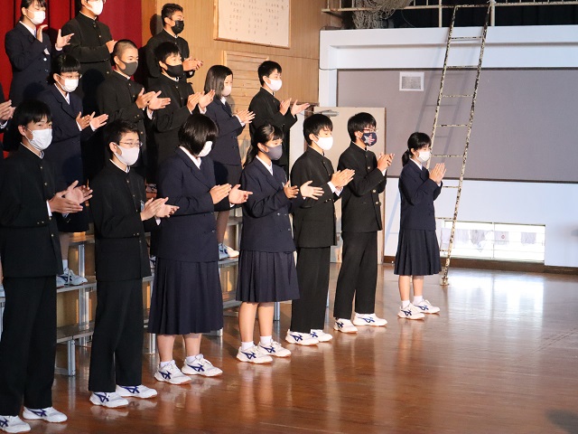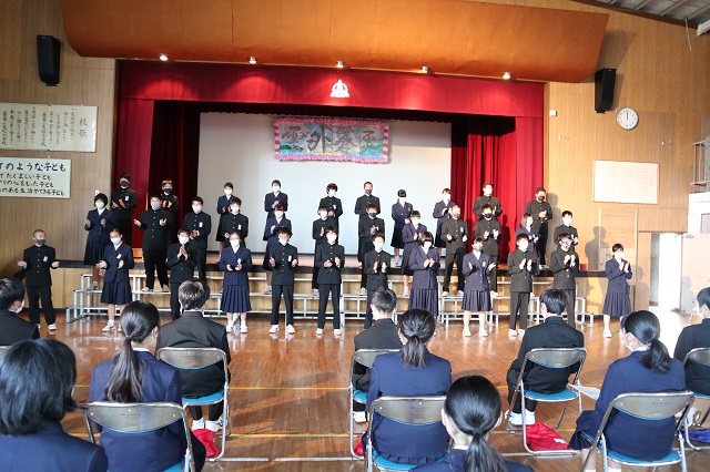 ・最初は,ハンドクラップを上手くできなかったけど,練習してできるようになって良かった。僕は積極的に行動するのが苦手だったけど,文化祭の準備などをして積極的に行動することができたので,これからも頑張りたい。