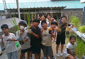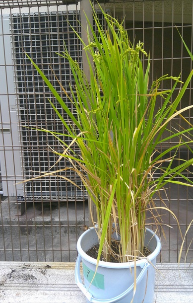 5年生が育てている稲が成長し、こんなに大きくなりました。 稲穂の重みで穂先が少し下がってきています。 夏休みの間は、職員玄関近くに置いていたのですが、台風接近のため、一旦風を受けない所へ。 実り多い秋になるとよいですね。
