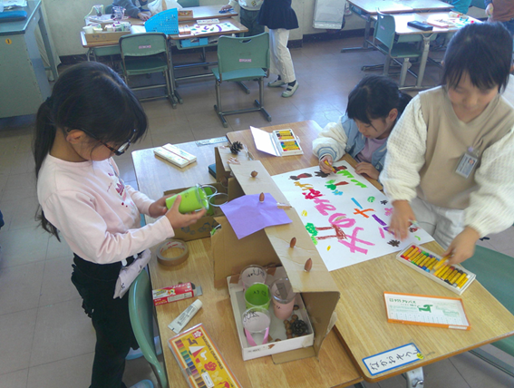 次の写真が、今日のために、生活科の時間で準備をしているところです。