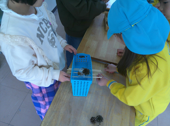 まつぼっくりのけん玉のやり方を見せている子もいました。