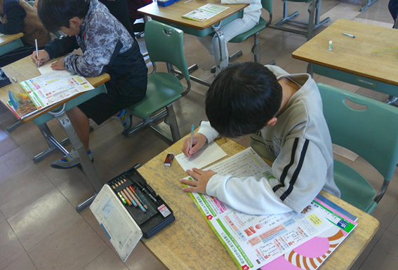 年賀状を書いている子供たちの様子を見ていて、きちんと年賀状に向き合う姿勢と、相手への感謝の気持ちを考えるあたたかさのある教室となっていました。