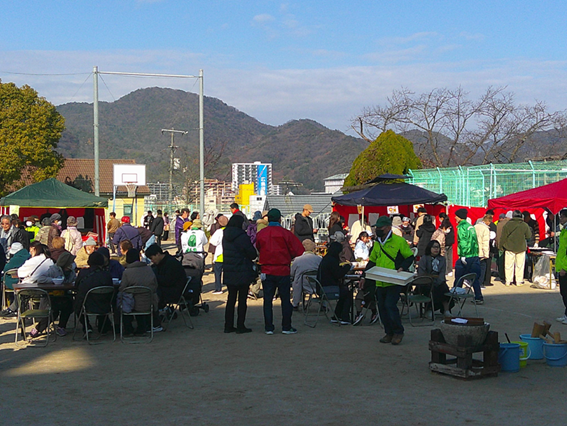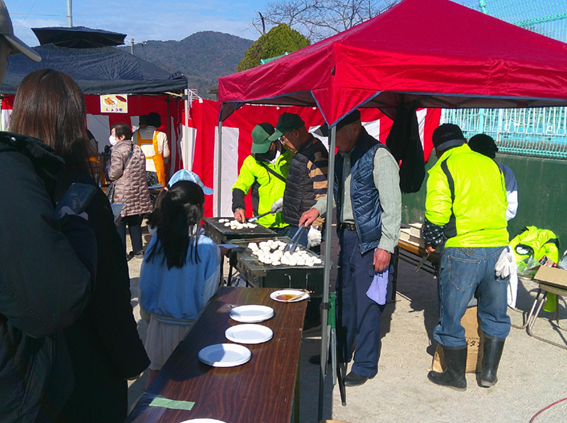 それを並んでいただき、PTAの方のテントでは、その焼いたお餅を、ぜんざいの中に入れてくださったり、砂糖醤油やきな粉を付けてくださったりします。