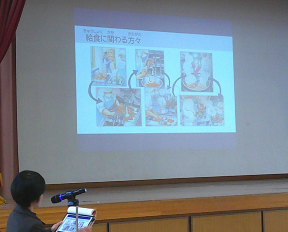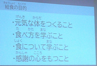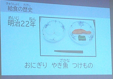 その後、給食の歴史について、古い物では明治22年の給食献立が紹介されました。