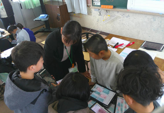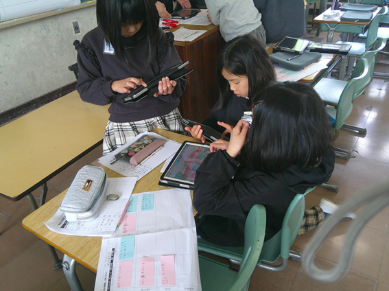 それを先生が写真にとられて,みんなのタブレットに。